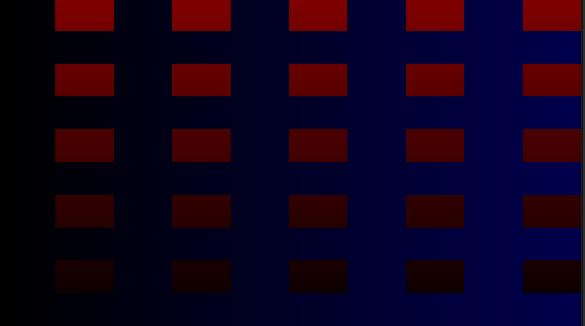vec4 main(vec2 fragCoord) { fixed3 COLOR1 = fixed3(0.0, 0.0, 0.3); fixed3 COLOR2 = fixed3(0.5, 0.0, 0.0); //屏幕坐标映射到0-1范围 vec2 uv = fragCoord.xy / iResolution.xy; //绘制背景 vec3 final_color = vec3(1,1,1); vec3 bg_color = vec3(0,0,0); vec3 wave_color = vec3(0,0,0); float c1 = fmod(uv.x, 2.0 * _BLOCK_WIDTH); c1 = step(_BLOCK_WIDTH, c1); float c2 = fmod(uv.y, 2.0 * _BLOCK_WIDTH); c2 = step(_BLOCK_WIDTH, c2); bg_color = mix(uv.x * COLOR1, uv.y * COLOR2, c1 * c2); return float4(bg_color.rgb, 1); } |
