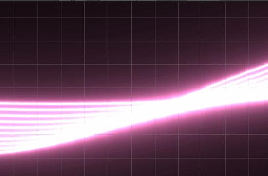 float wave_width = 0.01; uv = -1.0 + 2.0 * uv; uv.y += 0.1; for(float i = 0.0; i < 10.0; i++) { uv.y += (0.07 * sin(uv.x + i/7.0 + _Time.y )); wave_width = abs(1.0 / (150.0 * max(abs(uv.y), 0.0001))); wave_color += vec3(wave_width * 1.9, wave_width, wave_width * 1.5); } return float4(wave_color, 1); |