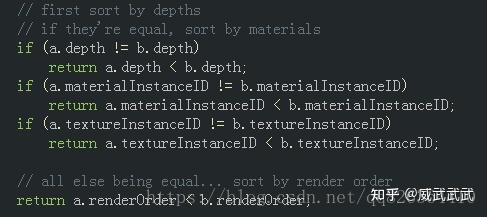 1.Depth计算完后,依次根据Depth、material ID、texture ID、RendererOrder(即UI层级队列顺序,HierarchyOrder)排序(条件的优先级依次递减),剔除depth == -1的UI元素,得到Batch前的UI 元素队列VisiableList。