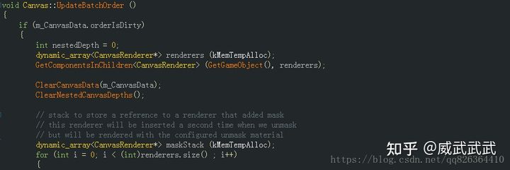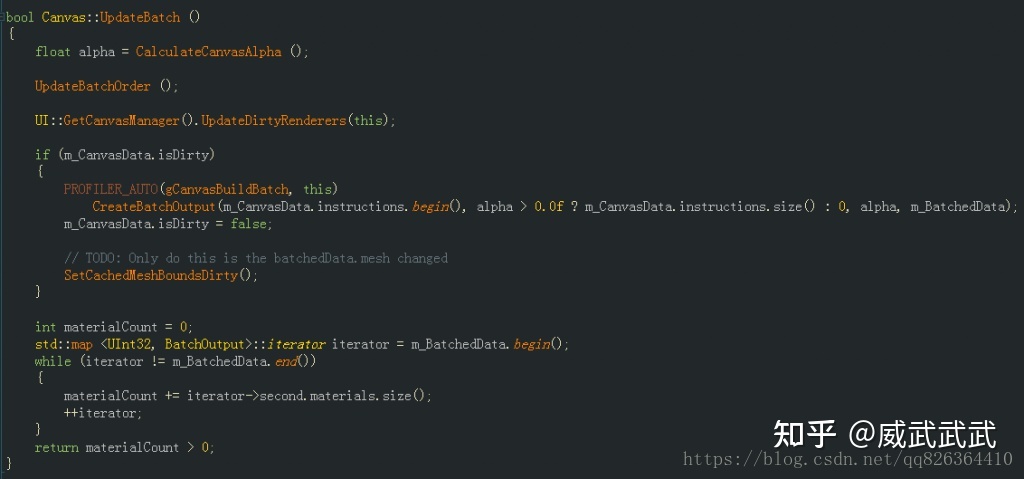 UGUI以Canvas为单位进行批次生成和渲染,Canvas可以嵌套包含Canvas。Batching的生成和合并在Canvas::Update里: