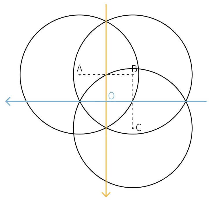 如图,黄色轴为v轴,代表u=0的线,为AB线段的中垂线,其上的点到AB两点的距离相同,故差值为0,u=0;同理蓝色轴为u轴,代表v=0的线。这样可以得到相应位置的采样方式,得到效果如图: