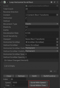 但是因为基于动画的滚动条复用性不高,每次制作一个新的滚动条都需要重新构建动画,而且看demo中整体的滚动布局不是很清晰,最终选择LoopScrollRect作为开发的基准,但是LoopScrollRect中的功能支持的不完全,还需要自己再进行一些开发工作。