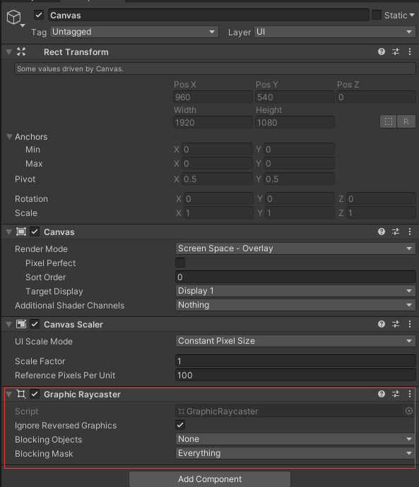 Unity中UI的射线检测由Graphic Raycaster进行管理。